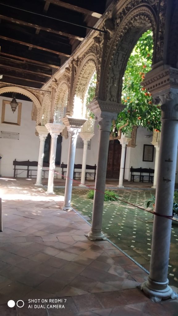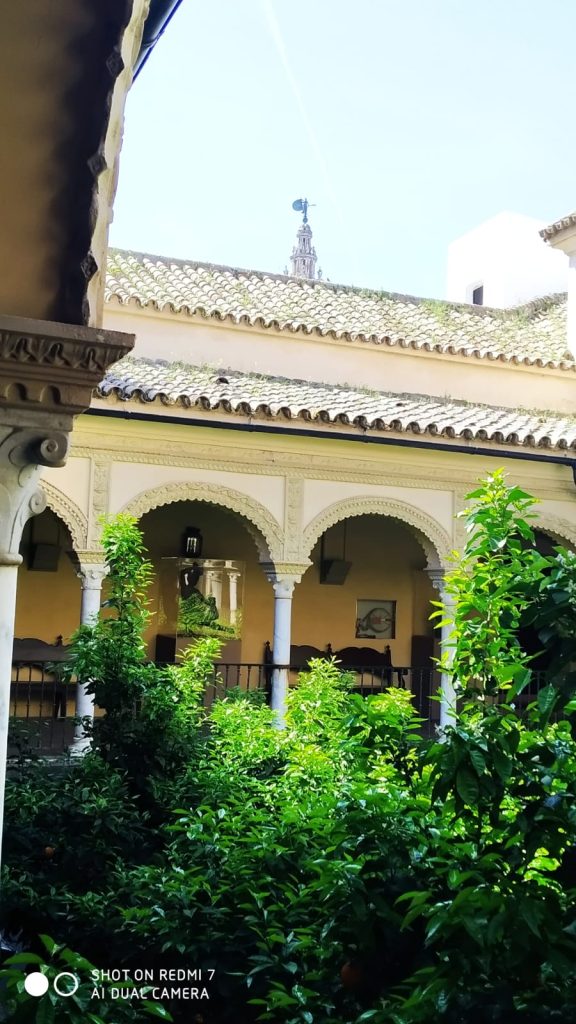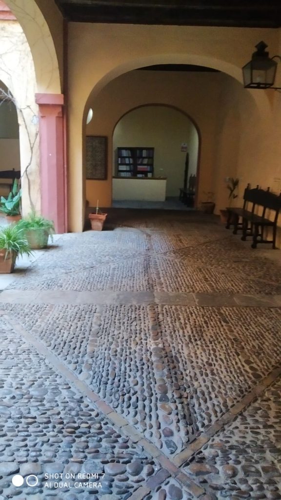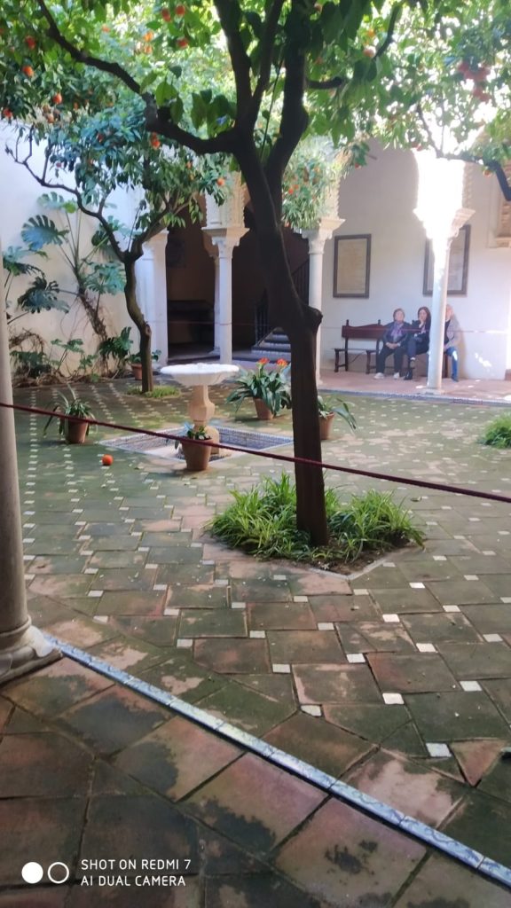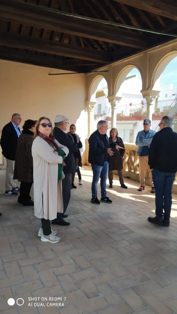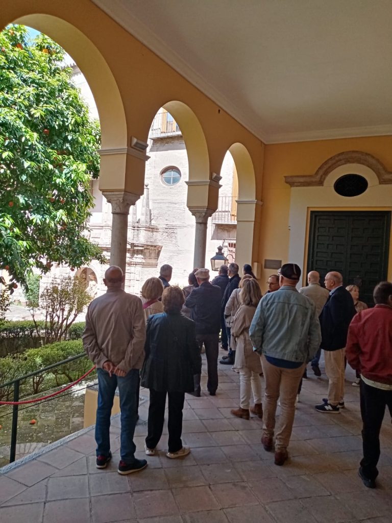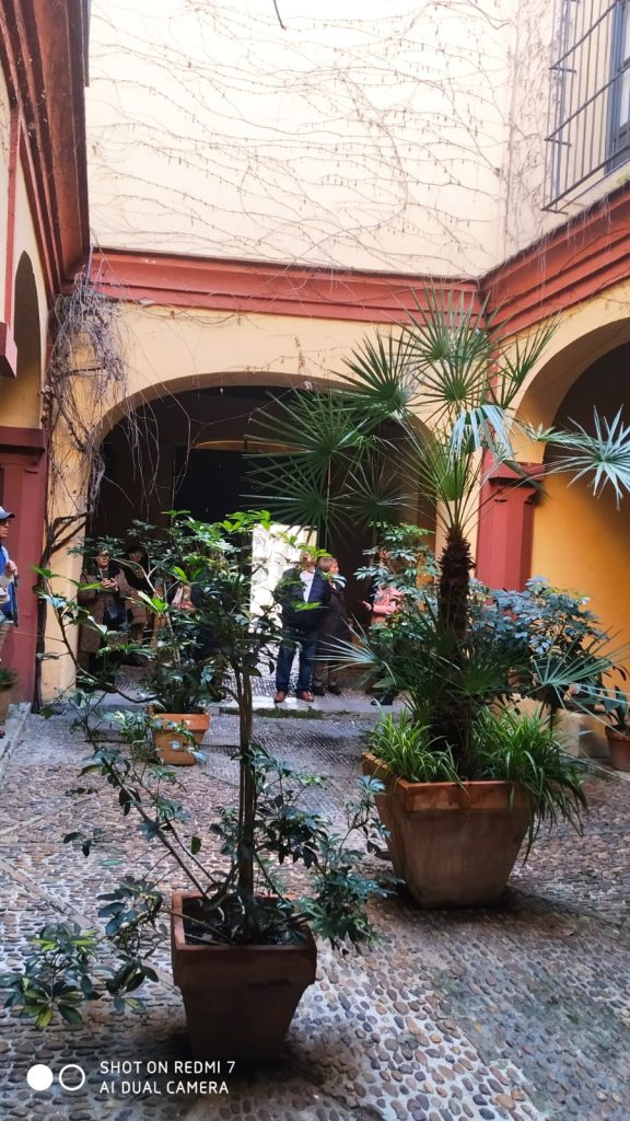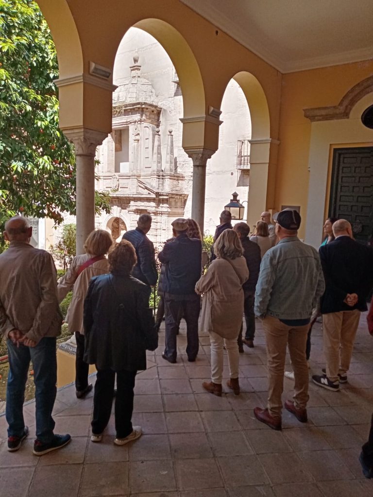 El pasado sábado día 16 de febrero se realizó la visita, guiada, a la Casa Palacio de los Pinelo que responde al modelo de casa-palacio medieval enriquecido con elementos renacentistas y, sobre todo, mudéjares, que también se repiten en otros edificios sevillanos de la misma época como la Casa Pilatos o el Palacio de las Dueñas. Se organiza en torno a cuatro espacios descubiertos: el apeadero, el patio de honor, en torno al cual se disponen los salones y principales dependencias de la casa, el jardín trasero, que tiene, como los dos primeros, galerías, fuentes y otros adornos y un cuarto patio más simple y pequeño.